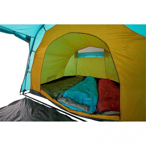 Robson 3-personers telt er et stort rummeligt tunneltelt med hele to indgange i den store apsis. Robson teltet har desuden 2 adskilte soverum med plads til 3 personer i alt.