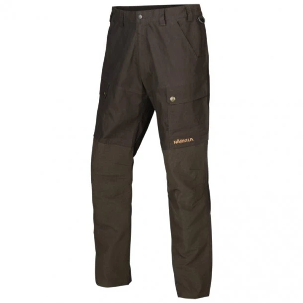Asmund Reinforced Bukser fra Härkila er et par friluftsbukser i et kraftigt, slidstærkt, vokset kanvasmateriale med forstærkninger, som er ideelle til forårs-, sommer- og efterårsbrug. Bukserne har et normalt snit, og de er vandafvisende, da de er blevet DWR-behandlet (Durable Water Repellent), hvilket betyder, at vandet perler på stoffets overflade i stedet for at trænge ind og gennem stoffet. Asmund Reinforced Bukser fra Härkila har to forlommer og to lårlommer. I bukselinningen af bukserne er der fastgjort en D-ring til montering af udstyr.