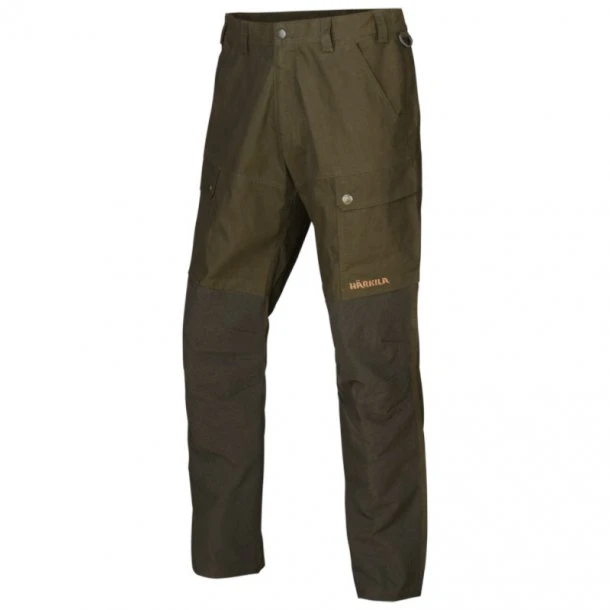 Asmund Reinforced Bukser fra Härkila er et par friluftsbukser i et kraftigt, slidstærkt, vokset kanvasmateriale med forstærkninger, som er ideelle til forårs-, sommer- og efterårsbrug. Bukserne har et normalt snit, og de er vandafvisende, da de er blevet DWR-behandlet (Durable Water Repellent), hvilket betyder, at vandet perler på stoffets overflade i stedet for at trænge ind og gennem stoffet. Asmund Reinforced Bukser fra Härkila har to forlommer og to lårlommer. I bukselinningen af bukserne er der fastgjort en D-ring til montering af udstyr.