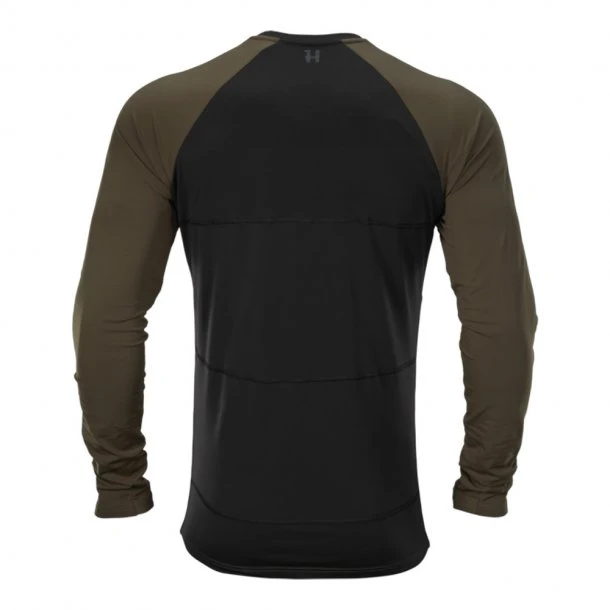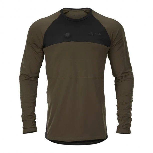 Heat Langærmet Undertrøje fra Härkila er en undertøje med varme i, som du vha. af en powerbank kan tænde for de aktive varmepaneler i undertrøjen. Undertrøjen sidder tæt på kroppen for bedst mulig isolering, og på de mest kuldeudsatte områder på overkroppen (bryst, skulderblade og lænden) er der indsyede varmemembraner. Disse kan indstilles til 35C, 43C eller 50C med en trykknap på brystet. Heat LS T-shirt fra Härkila er udstyret med en indsyet lomme i højre side, hvor der er en lang stofledning med vandtæt USB-stik, så du kan tilslutte en powerbank. Undertrøjen varmeregulerer sig selv efter dine indstillinger og går i dvale, når den når den ønskede temperatur. Fremstillet i 80% nylon og 20% spandex, hvilket gør t-shirten hurtigtørrende, slidstærk og strækbar på en og samme tid. Der medfølger en vandtæt drybag, som undertrøjen kan pakkes ned i.