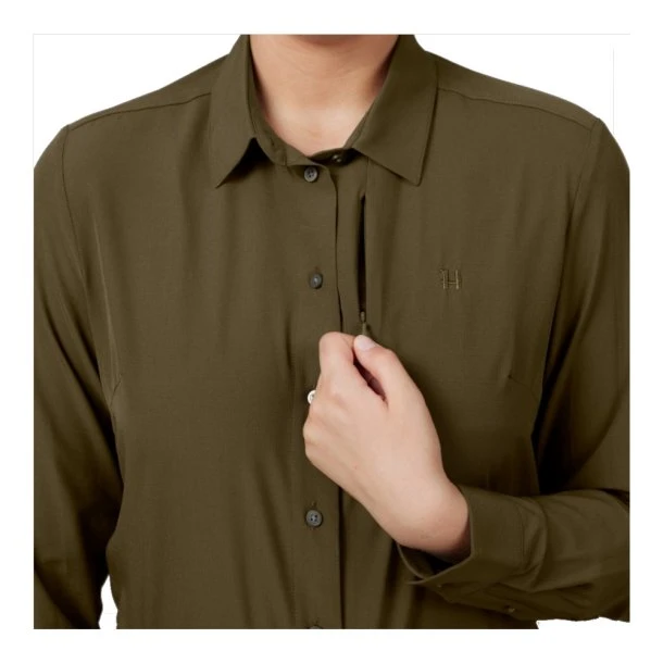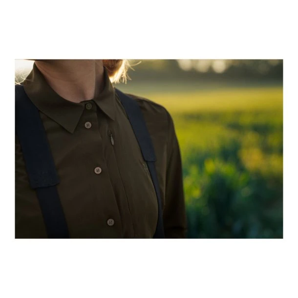 Den nye lette og luftige skjorte, Trail Dame Skjorte fra Härkila har en række funktioner som vil være en fordel for dig der skal på jagt i de varme klimaer – den er Tanatex behandlet så myg, insekter og flåter bliver ikke en bekymring, den har ventilationshuller under ærmerne som giver god udluftning under jagten, og hvis du kan lide at have ærmerne smøget op, er der er der en strop i ærmerne, som holder opsmøget på plads.