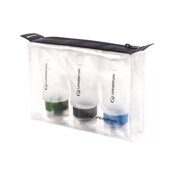 De nye regler for sikkerhed i lufthavne dikterer at alle væsker som transporters i håndbagagen, skal opbevares i beholdere under 100 ml (EU) og 90ml (USA), samt at disse skal anbringes i en klar pose eller taske. Dette sæt af flasker giver dig mulighed for at adskille dine væsker som fx sæbe og creme hjemmefra, således du ungår en uheldig situation ude i lufthavnen