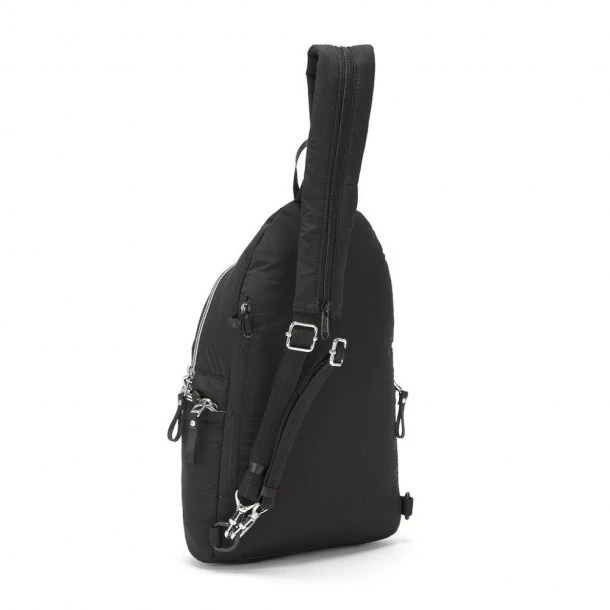 Stylesafe Tyverisikret Skuldertaske (6L) fra Pacsafe kan bruges som skuldertaske eller rygsæk alt efter, hvad du finder mest behageligt. Skuldertasken er meget alsidig, da den nemt kan bæres på forskellige måder, og der er lommer til f.eks. din tablet eller lille computer. Skuldertasken er beskyttet med tyverisikret features i form af en rem, som du f.eks. kan fastgøre rundt omkring et bord eller en stol, når du sidder og får et hvil.