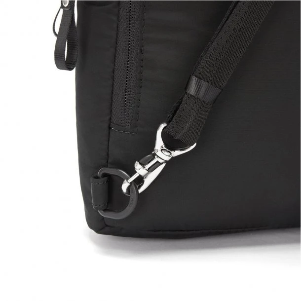 Stylesafe Tyverisikret Skuldertaske (6L) fra Pacsafe er fremstillet med en sikker lynlås og cut-resistant materialer, der har til formål at beskytte dine ejendele. Dertil er skuldertasken fremstillet med RFID-blokerende lommer, som også beskytter dit kreditkort og pas mod uønskede scanninger. Derudover er der en skjult lomme, hvori du kan opbevare dine værdigenstande uden bekymringer. Ydermere får du indvendige lommer til at holde dit udstyr organiseret, en telefonlomme, invendig fastgørelsespunkt til pung og nøgler samt en kuglepensløkke.