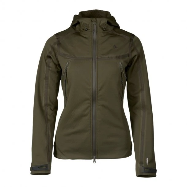 Hawker Advance Jakke til kvinder fra Seeland er en teknisk skaljakke, som er udviklet til jægeren, der ikke lader sig skræmme for svært terræn eller dårligt vejr. Jakken er ideel til alle former for aktiv jagt, og den er udstyret med vind- og vandtæt membran samt forstærkede sømme med tapering på inder- og ydersiden. Hawker Advance Jakke til kvinder fra Seeland er tætsiddende og strækbar, og jakken følger kroppens naturlige bevægelser uanset, hvilket terræn, du bevæger dig i. Jakkens inderside er foret med blødt, vaflet polyesterm som tillader luft og fugt at cirkulere og fordele sig på kroppen og fordampe hurtigere. Hawker Advance Jakke til kvinder fra Seeland er rigtig åndbar og temperaturregulerende, så hvis du får det for varmt, kan du lyne op under armene og lufte ud. Jakkens front er udstyret med et lommesystem med fire lommer gemt bag to vandtætte lynlåse, som kan lynes fra top og bund.