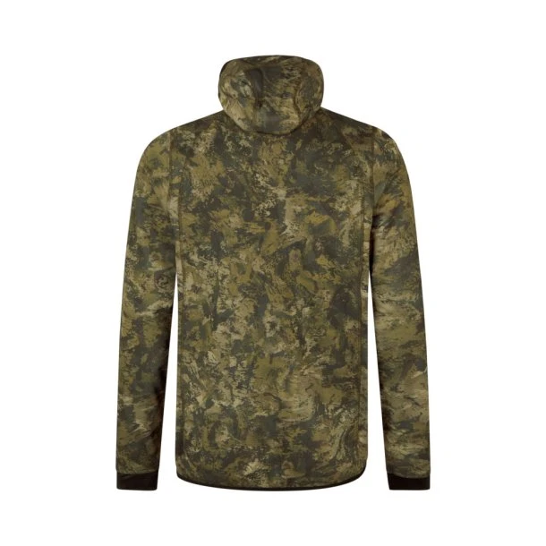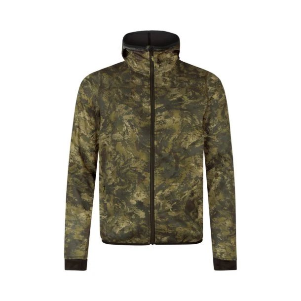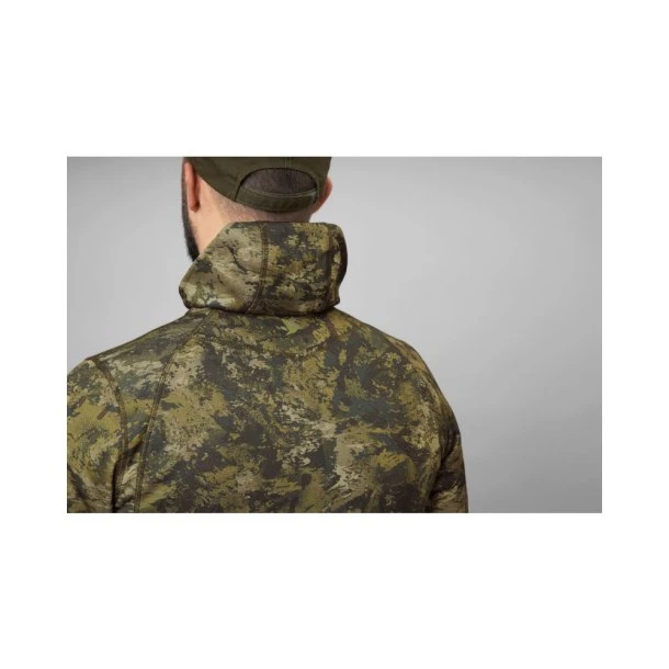 Behagelig fleece trøje i blødt, strækbart stof. Tilbyder lynlåslommer foran, tommelfingerhul og hætte. Alt efter årstiden fungerer trøjen godt som et støjsvagt yderlag, eller isolerende mellemlag under din jakke. Den har InVis®-camouflage hvilket giver bedre skjul på jagt.