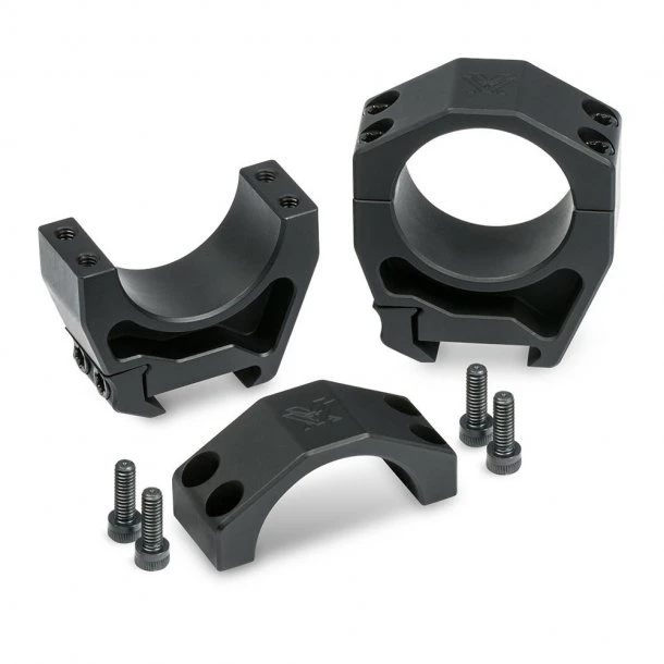 Denne montage har en utrolig høj standard i gennem hele produktionsprocessen. De er CNC-fremstillet af 7075-T6 USA certificeret aluminium, hvilket giver utrolig holdbarhed. Utrolig stram tolerance på .0005 tommers spredning. Du får 2 identiske ringe med i pakken, så du er sikker på at de matcher din kikkert. Ringene er nummererede, vibrerede, sandblæst og lakeret med Type III hård anodisering for ens fremstilling – hver gang. Ringene har en flot og glat overflade. Passer til picatinny.